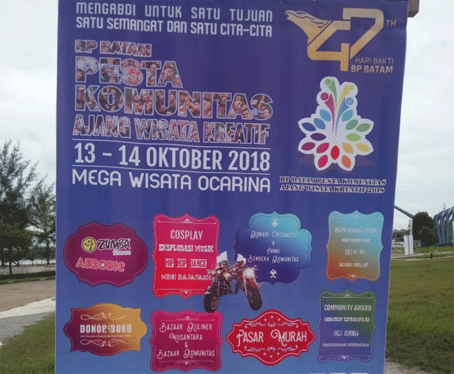 “Akhir pekan ini, BP menggelar pesta komunitas dan wisata kreatif di kawasan wisata Mega Ocarina,” kata Plt Kasubdit Humas BP Batam Muhammad Taofan, Jumat (12/10) di Batamcentre.