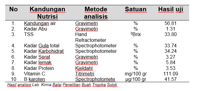 Tabel 1. Kandungan Nutrisi Daging Buah Durian Daun di Kabupaten Bintan