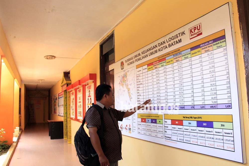 Warga melihat papan penguman di Kantor KPU Kota Batam di Sekupang.