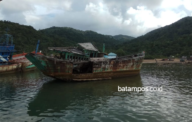 Bangkai kapal asing hasil tangkapan terlihat mulai rapuh di Desa Tarempa Timur, Natuna. Bangkai kapal ini bisa dijadikan objek wisata untuk menarik kunjungan wisatawan ke Anambas.