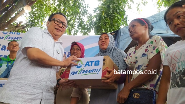 ATB Batam menyerahkan 100 paket sembako, 54 perlengkapan mandi anak, dan pakaian layak pakai.