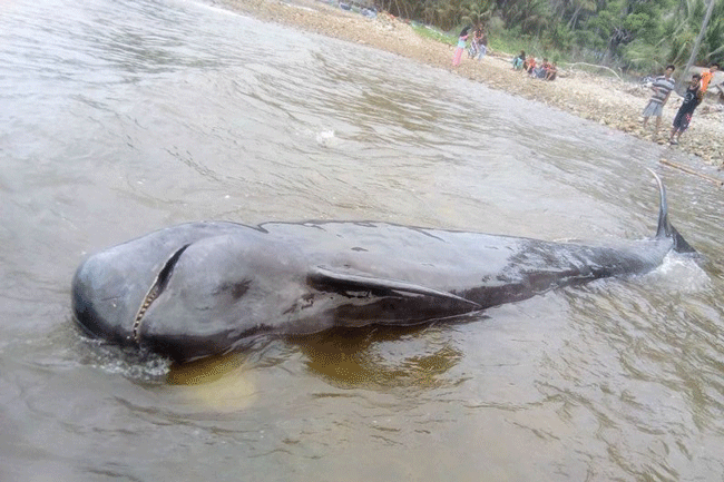 batampos.co.id – Seekor ikan paus pilot, terdampar di Pantai Selatan Gorontalo Desa Tolotio, Kecamatan Bone, Pantai Kabupaten Bone Bolango, Provinsi Gorontalo, Sabtu.