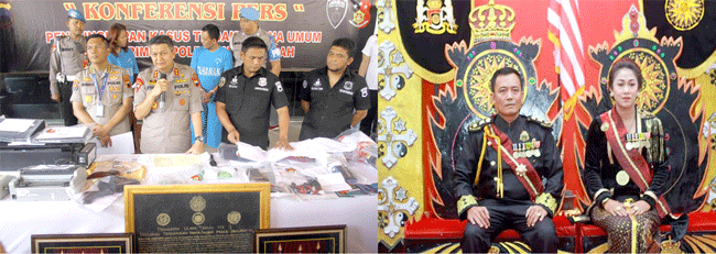Kendati di depan pengikut mereka bergelar raja dan ratu, di kantor polisi keduanya tampak lesu.