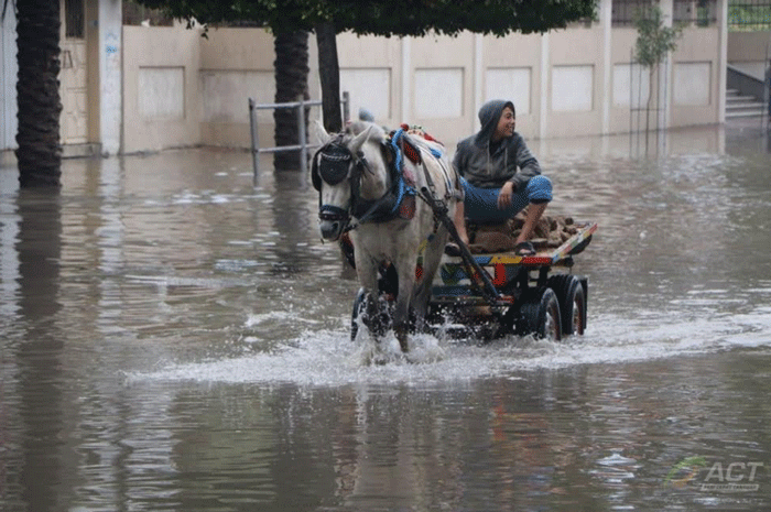 Musim dingin membuat suhu begitu rendah di Gaza. Sisa air hujan pun kerap menggenangi jalan dan permukiman. Di saat seperti itu, sebagian warga Gaza mencari kehangatan di rumah-rumah yang tidak beratap.