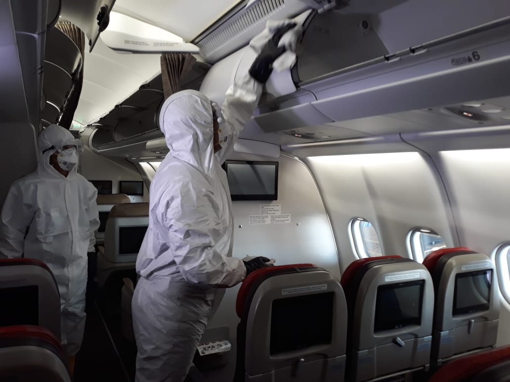 “Cara sterilisasi ini dengan dimusnahkan. Prosedurnya begitu, setelah itu pesawat dijamin steril dari kuman dan virus,” ungkapnya.