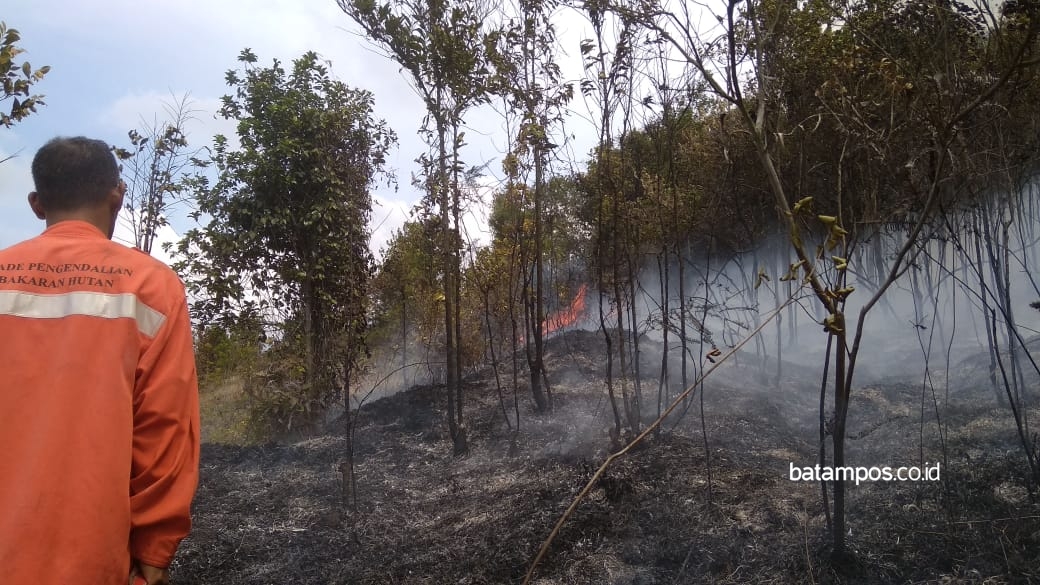 batampos.co.id – Satu hektare hutan yang berada di area komplek Pajak Tiban, Sekupang, terbakar, Jumat (20/3/2020).