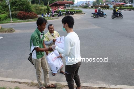 AMC Group memberikan paket sembako dan nasi kepada masyarakat yang mencari nafkah di jalanan, Sabtu (11/4/2020). Foto: Istimewa untuk batampos.co.id