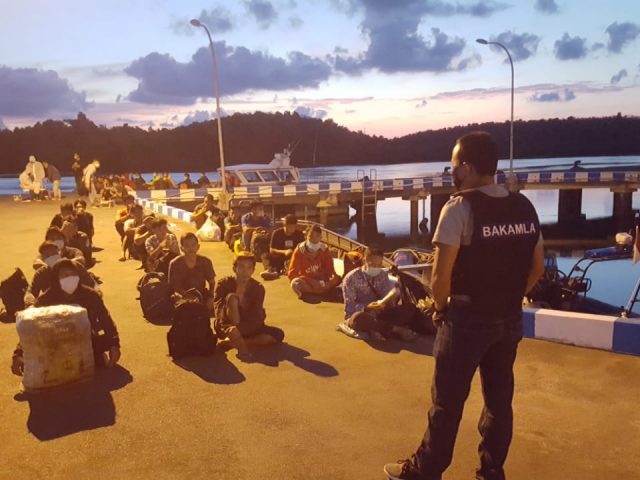 batampos.co.id – Pembatasan mobilitas untuk menanggulangi pandemi Covid-19 di Malaysia tidak bisa membendung pekerja migran asal Indonesia. Masih saja ada yang berusaha pulang melewati jalur tikus alias jalur terlarang. Rabu dini hari (15/4) Badan Keamanan Laut (Bakamla) menangkap 47 TKI di perairan Nongsa, Teluk Mata Ikan, Batam, Kepulauan Riau.