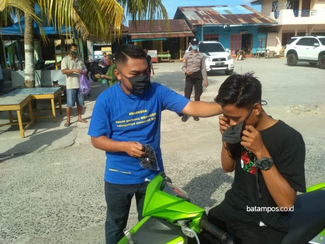 batampos.co id – Komite Nasional Pemuda Indonesia (KNPI) Kecamatan Jemaja, Kabupaten Kepulauan Anambas, membagikan masker gratis kepada masyarakat. Terutama kepada pengguna kendaraan bermotor yang melintasi di Jalan Merdeka Kelurahan Letung, Minggu (19/4/2020).