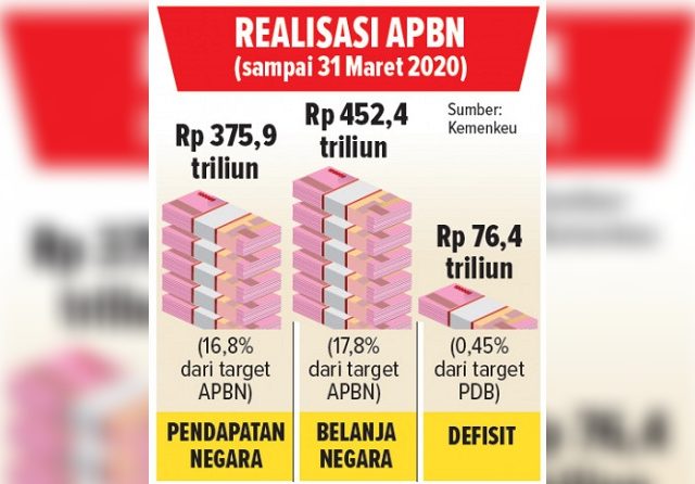 batampos.co.id – Defisit anggaran pendapatan dan belanja negara (APBN) tercatat Rp 76,4 triliun hingga Maret lalu. Sementara itu, pertumbuhan ekonomi pun terkontraksi akibat wabah global Covid-19. Menteri Keuangan Sri Mulyani Indrawati memproyeksi pertumbuhan ekonomi kuartal I tumbuh 4,6 persen.