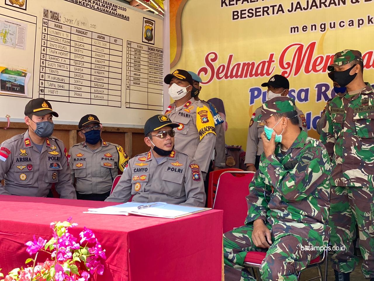 batampos.co.id – Kapolres Kepulauan Anambas, AKBP Cakhyo Dipo Alam, didampingi Waka Polres Kompol Yudi Sukmayadi, dan Kabag Ops AKP M. Djaiz melakukan pengecekan pos pengamanan Operasi Ketupat Seligi 2020 di Polsek Palmatak di Pelabuhan Palmatak Kecil. Jumat (8/5/2020).