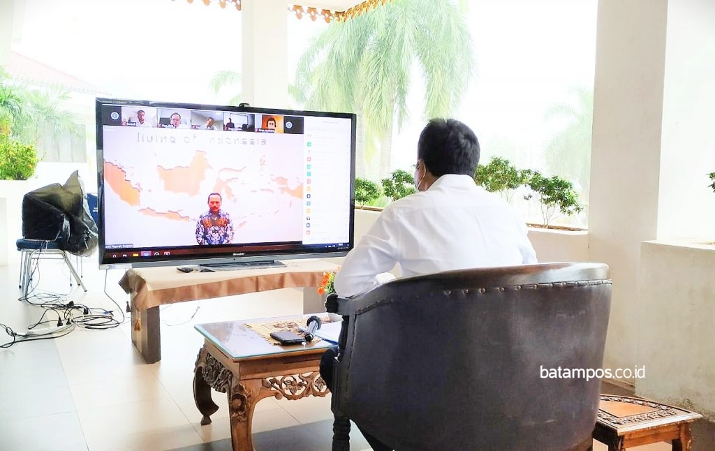 Ketua Gugus Tugas Percepatan Penanganan Corona Virus Disease 2019 (Covid-19) Kota Batam, Muhammad Rudi, bantuan tersebut diserahkan secara simbolis saat konferensi video di Kantor Wali Kota Batam, Senin (11/5/2020).