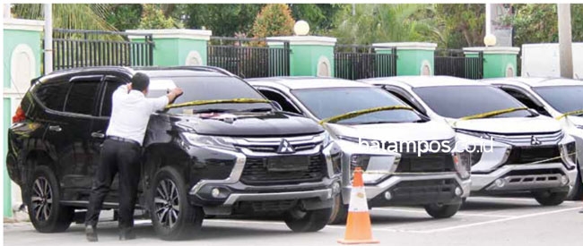 Pantauan Batam Pos, ada 13 mobil berbagai merek diparkir di Polda Kepri, dan telah diberi label barang bukti.