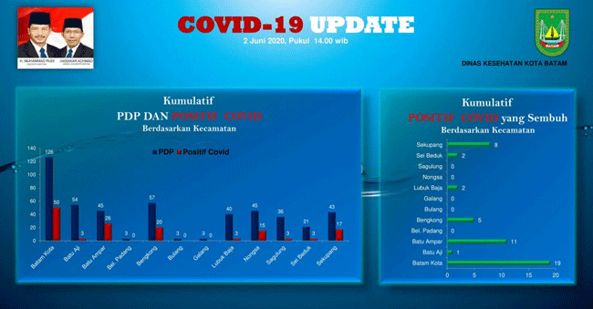 Dilansir dari website lawancorona.batam.go.id, diketahui dari jumlah tersebut PDP terbanyak terdapat di Kecamatan Batam Kota yaitu 126 orang dan paling sedikit berada di Kecamatan Bulang, Belakang Padang dan Galang.