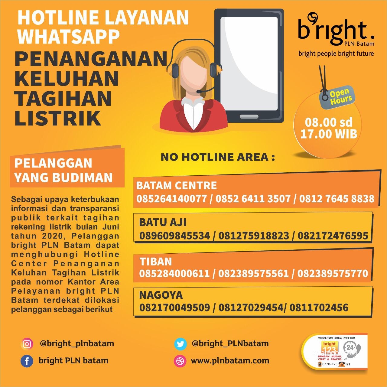 Staf Humas bright PLN Batam, Yoga Perdana, mengatakan, nomor hotline dikeluarkan pihaknya sebagai upaya keterbukaan informasi dan transparansi publik terkait rekening listrik di bulan Juni tahun 2020.