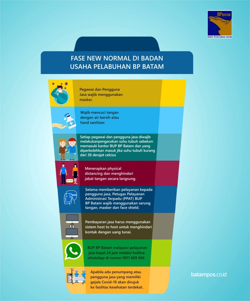 Badan Usaha Pelabuhan (BUP) Badan Pengusahaan (BP) Batam menerapkan protokol kesehatan ketat pada tatan hidup baru atau New Normal yang dijalankan sejak Senin (15/6/2020).