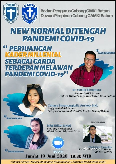 batampos.co.id – Gerakan Angkatan Muda Kristen Indonesia (GAMKI) dan Gerakan Mahasiswa Kristen Indonesia (GMKI) Kota Batam menggelar dialog publik dengan tema “Perjuangan kader millenial sebagai garda terdepan melawan pandemi Covid-19”.