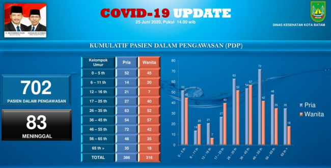 Sementara wanita 316 orang. PDP di Kota Batam didominasi masyarakat dengan rentang usia 26-36 tahun dengan jumlah 115 orang.