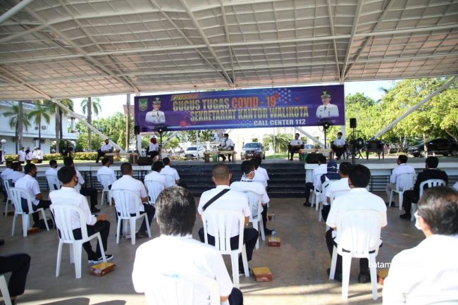 Kepala BP Batam, Muhammad Rudi, sat membeirkan pengarahan kepada pegawai Pelayanan Lalu Lintas Barang dan Penanaman Modal BP Batam untuk meninjau penerapan protokol kesehatan di 53 perusahaan di Kota Batam. Foto: BP Batam untuk batampos.co.id