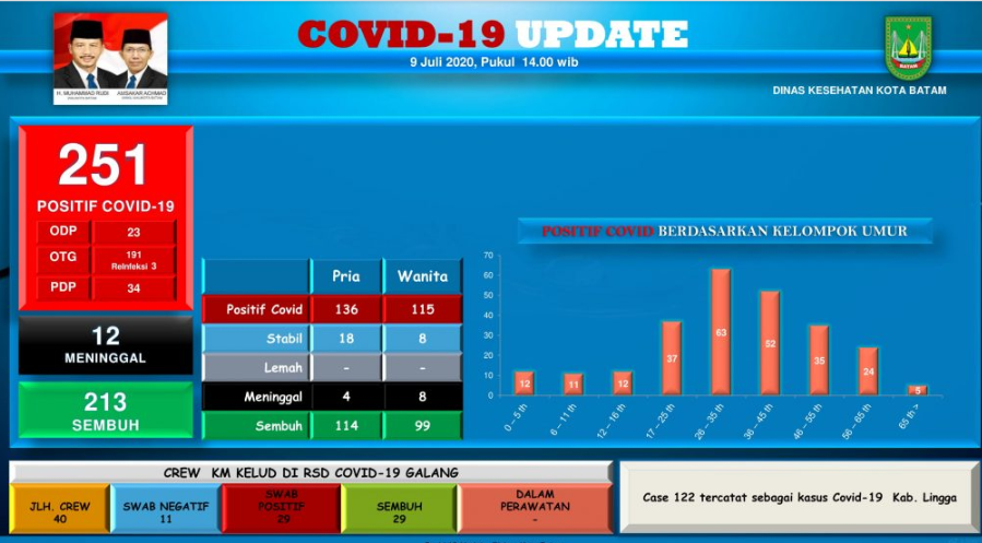 M merupakan kasus baru Covid19 Nomor. 249 Kota Batam, yang bersangkutan merupakan ayah kandung dari Terkonfirmasi