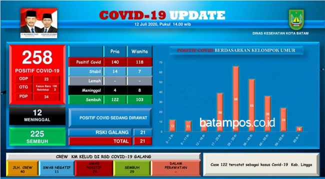 batampos.co.id – Tim Gugus Tugas Covid-19 Kota Batam kembali merilis penambahan pasien Covid-19 pada Minggu (12/7/2020).