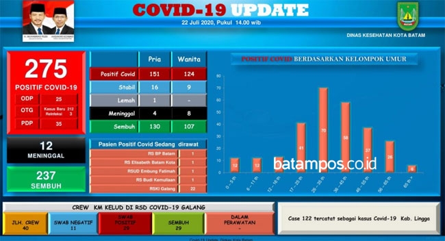 Berikut daftar pasien Covid-19 di Kota Batam yang dinyatakan sembuh pada Rabu (22/7/2020):
