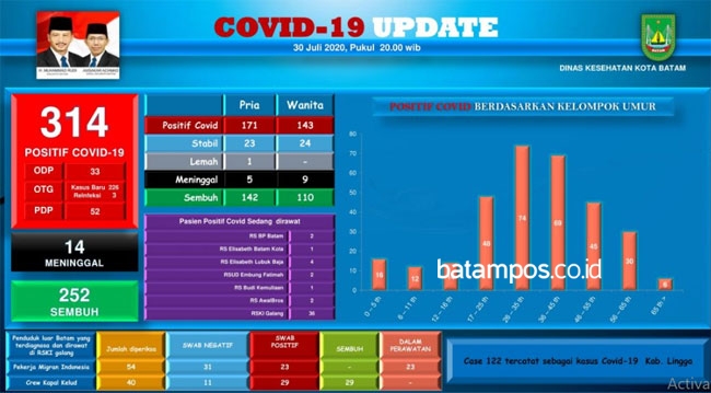 Dengan adanya penambahan tersebut jumlah pasien Covid-19 di Kota Batam saat ini sebanyak 314 orang.(*/esa)