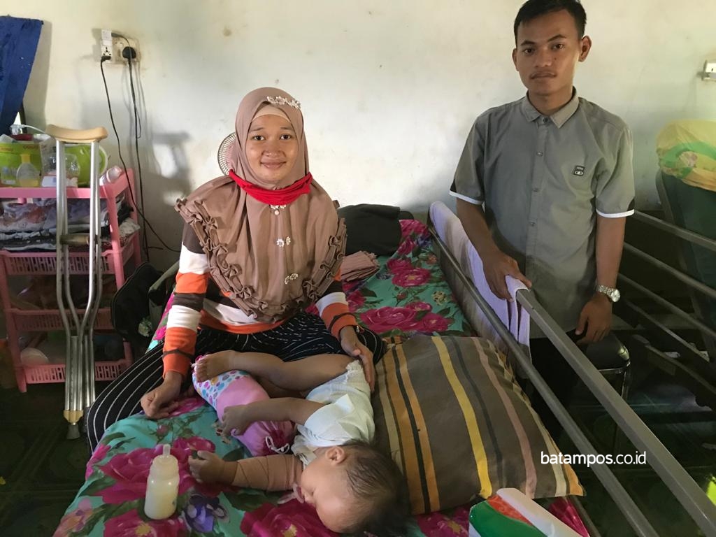 Muhammad Afif (berbaring) bersama kedua orang tuanya, Dewi dan Rohman saat menjalni perawatan di pengobatan alternatif di Batu Besar, Nongsa. Foto: Istimewa untuk batampos.co.id