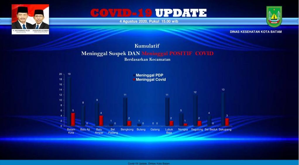 Ketua Gugus Tugas Covid-19 Kota Batam, Muhammad Rudi, melalui pernyataan tertulisnya, menyampaikan pada Rabu (5/8/2020) ada tiga warga Kota Batam yang meninggal dunia karena Covid-19.