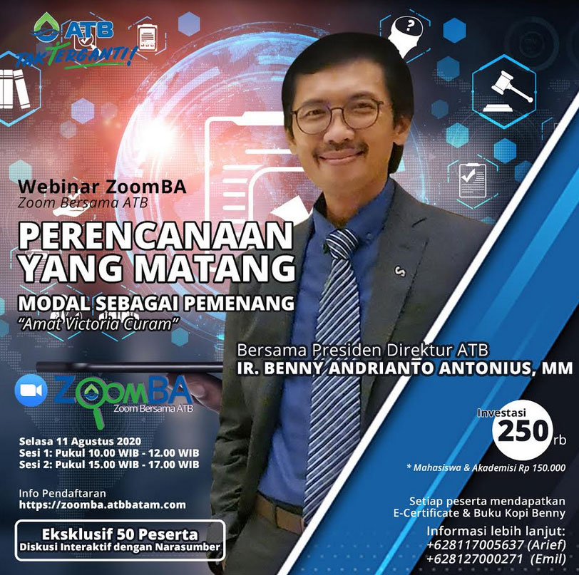 Presiden Direktur ATB, Ir. Benny Andrianto Antonius, MM akan jadi pembicara dalam webinar ZoonmBA dengan tema “Perencanaan Yang Matang Modal Sebagai Pemenang – Amat Victoria Curam”.