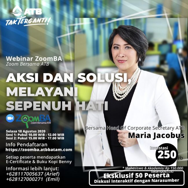 batampos.co.id – Ingin meningkatkan pelayanan pelanggan perusahaan menjadi kelas bintang 5? Webinar Zoom Bersama ATB (ZoomBA) episode 4 menyediakan solusinya.