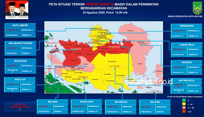 Peta penyebaran Covid-19 di Kota Batam pada Sabtu (22/8/2020).