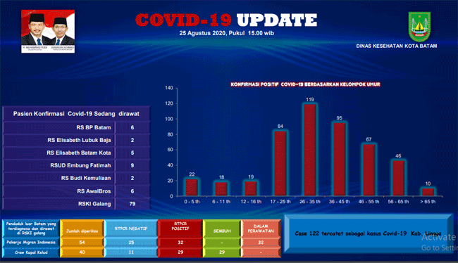 Dilansir dari website lawancorona.batam.go.id, warga Batam yang terkonfirmasi positif Covid-19 paling banyak dirawat di RSKI Galang. Jumlahnya 79 orang.