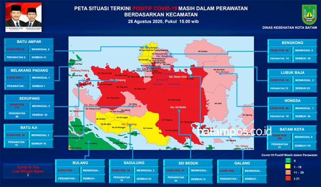 Peta penyebaran kasus Covid-19 di Kota Batam hingga Jumat (28/8/2020).