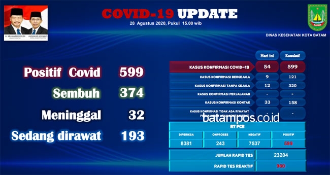 Dengan adanya penambahan tersebut saat ini jumlah masyarakat Kota Batam yang dinyatakan sembuh dari Covid-19 sebanyak 374 orang.