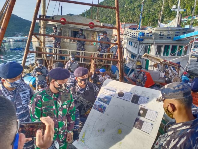 “Khususnya di laut Natuna Utara, meskipun dalam kondisi keterbatasan akibat pandemi Covid-19 kita tetap menjalankan fungsi tugas dalam mengamankan perairan kita dan saya pastikan bahwa kita tetap berada di depan dalam menjaga perbatasan laut Indonesia,” tuturnya.