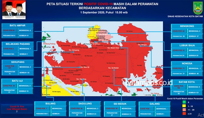 batampos.co.id – Hingga Selasa (1/9/2020), jumlah warga Kecamatan Sekupang yang menjalani perawatan di rumah sakit karena terkonfirmasi Covid-19 sebanyak 71 orang.
