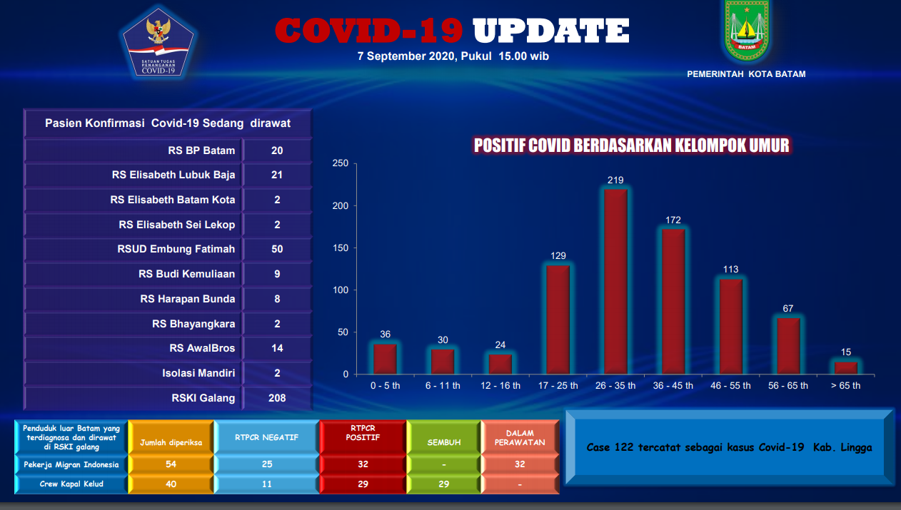 Dilansir dari website lawancorona.batam.go.id diketahui dari jumlah tersebut 433 orang dinyatakan sembuh, 34 orang meninggal dunia dan 334 orang dalam perawatan di 10 rumah sakit rujukan Covid-19.