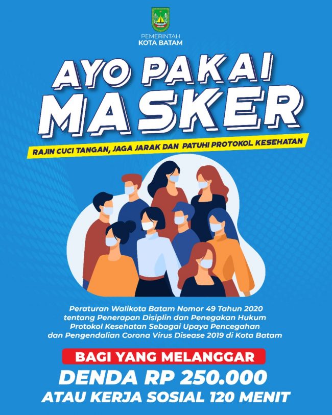 batampos.co.id – Pemerintah Kota Batam gencar melakukan sosialisasi Peraturan Wali Kota (Perwako) Nomor 49 Tahun 2020 kepada masyarakat. Perwako ini mengatur tentang penerapan disiplin dan penegakan hukum protokol kesehatan sebagai upaya pencegahan dan pengendalian corona virus disease (Covid-19) di Kota Batam.