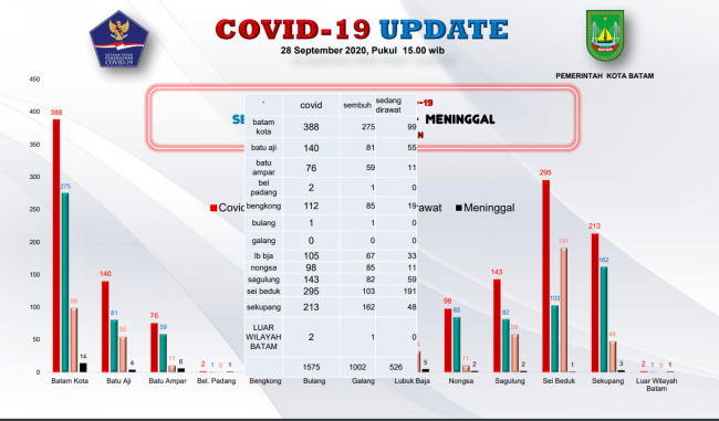 batampos.co.id – Hingga Senin (28/9/2020) total jumlah pasien Covid-19 di Kota Batam mencapai 1.5755 orang.