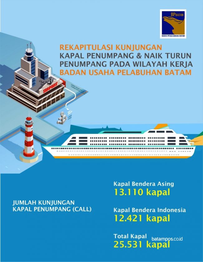 Metropolis Rekapitulasi Kunjungan Kapal Penumpang dan Naik Turun Pada Wilayah Kerja Badan Usaha Batam Hingga Agustus 2020 Editor: Aris Kamis, 1 Okt 2020 - 17:17 WIB Bagikan WhatsAppTelegramLINEFacebookTwitter Berita Terkait Acara Ngopi Kamtibmas, Warga Keluhkan di U Turn dekat Vitka Tiban Sering Terjadi Kecelakaan Sabtu, 25 Apr 2026 - 18:15 WIB Menkeu Purbaya Bantah Uang Negara Tersisa Rp120 Triliun, Sebut Uang Indonesia Masih Banyak Sabtu, 25 Apr 2026 - 17:50 WIB Istri Ibam Surati Prabowo, Sebut Negara Menzolimi Mereka di Kasus Korupsi Chromebook Sabtu, 25 Apr 2026 - 17:30 WIB Infografis aliibenk/batampos.co.id Badan Usaha Pelabuhan mencatat jumlah kunjungan kapal di pelabuhan yang ada di Kota Batam mencapai 25.531 kapal hingga Agustus 2020. Dengan rincian kapal berbendera 12.421 kapal dan kapal berbendera asing 13.110 kapal.(esa/adv) Bagikan WhatsAppTelegramLINEFacebookTwitter Update Acara Ngopi Kamtibmas, Warga Keluhkan di U Turn dekat Vitka Tiban Sering Terjadi Kecelakaan 10 jam lalu Menkeu Purbaya Bantah Uang Negara Tersisa Rp120 Triliun, Sebut Uang Indonesia Masih Banyak 11 jam lalu Istri Ibam Surati Prabowo, Sebut Negara Menzolimi Mereka di Kasus Korupsi Chromebook 11 jam lalu Dua Helikopter Angkatan Laut Malaysia Tabrakan Saat Latihan, 10 Orang Tewas 12 jam lalu Angka Fantastis, Ternyata AS Sudah Habiskan Rp1.000 Triliun Selama Perang Melawan Iran 12 jam lalu