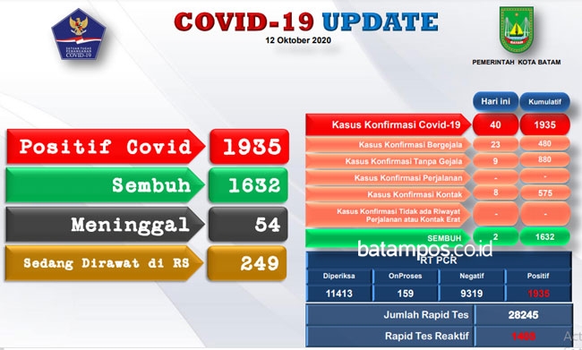 Dengan adanya penambahan tersebut saat ini total jumlah pasien Covid-19 di Kota Batam mencapai 1.935 orang.