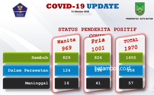 Dengan adanya penambahan tersebut total jumlah pasien Covid-19 di Kota Batam mencapai 1.970 orang.