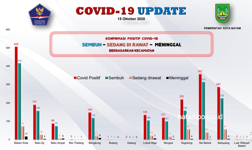 Dilansir dari website lawancorona.batam.go.id, diketahui dari jumlah tersebut 416 orang dinyatakan sembuh, 73 orang dalam perawatan dan 17 orang meninggal dunia.