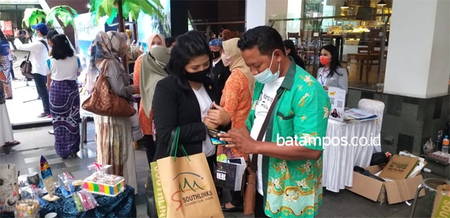 Salah seorang warga Bandung mengunjungi stand Dinas Kebudayaan dan Pariwisata Kota Batam. Salah satu destinasi unggulan yang dipromosikan adalah Pulau Abang. Foto: Istimewa untuk batampos.co.id