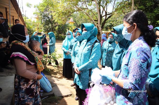 Tri juga menyerahkan bantuan Sembako pada perwakilan warga dan menyerahkan 5 ribu masker pada TP PKK Nongsa, di Kelurahan Batu Besar, Kecamatan Nongsa.