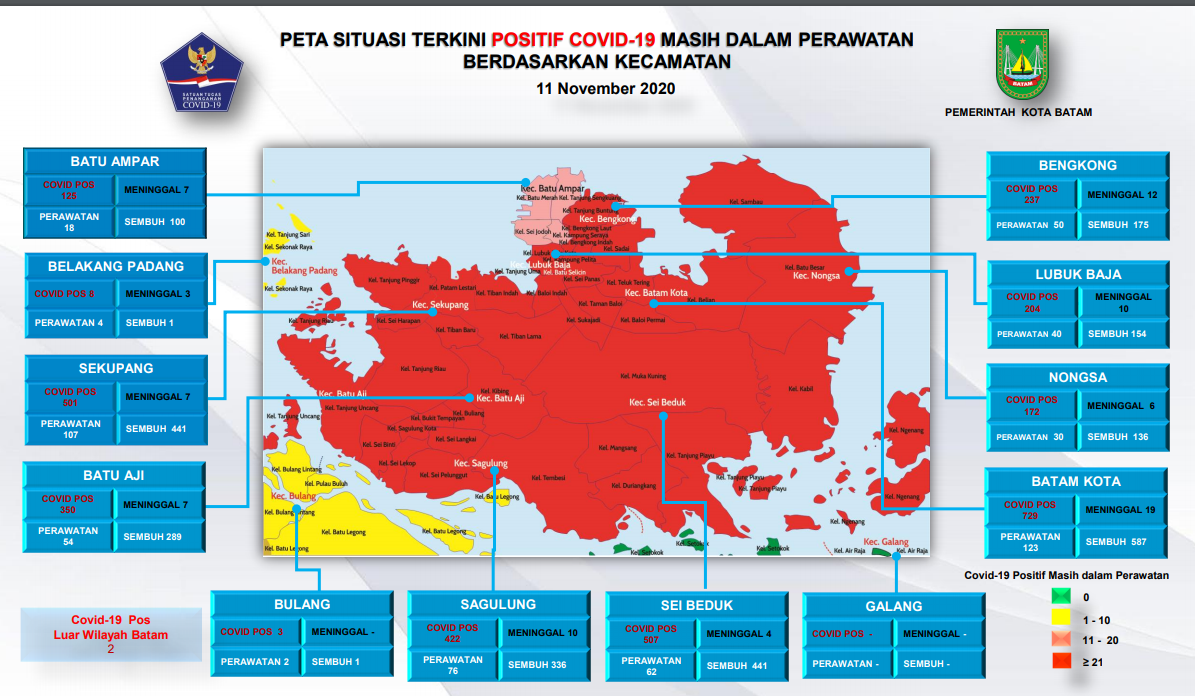 Berikut daftar kecamatan di Kota Batam yang masuk daftar zona merah: