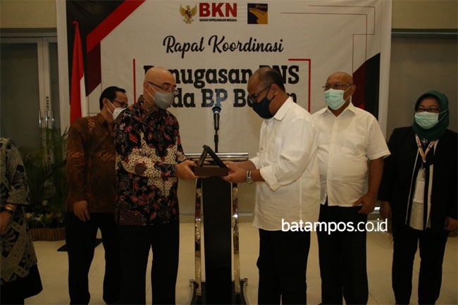 Penyerahan dilakukan dalam Rapat Koordinasi dan Penyampaian Pertimbangan Teknis Kepala BKN Tentang Penugasan PNS pada BP Batam, Senin (23/11/2020), di Aston Hotel & Resort Bogor.
