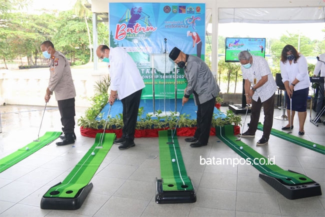 Penjabat sementara (Pjs) Wali Kota Batam, Syamsul Bahrum, meluncurkan Batam Golf 2021 di Palm Spring, Nongsa, Kamis (26/11/2020).