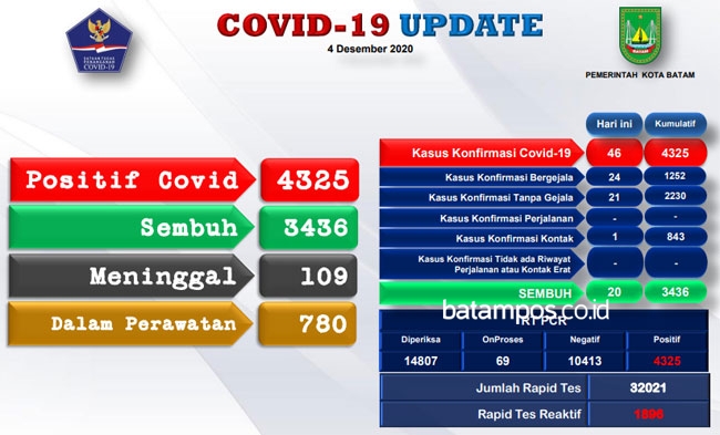 Terbaru pada Jumat (4/12/2020) ada 46 orang yang dinyatakan terkonfirmasi positif Covid-19.